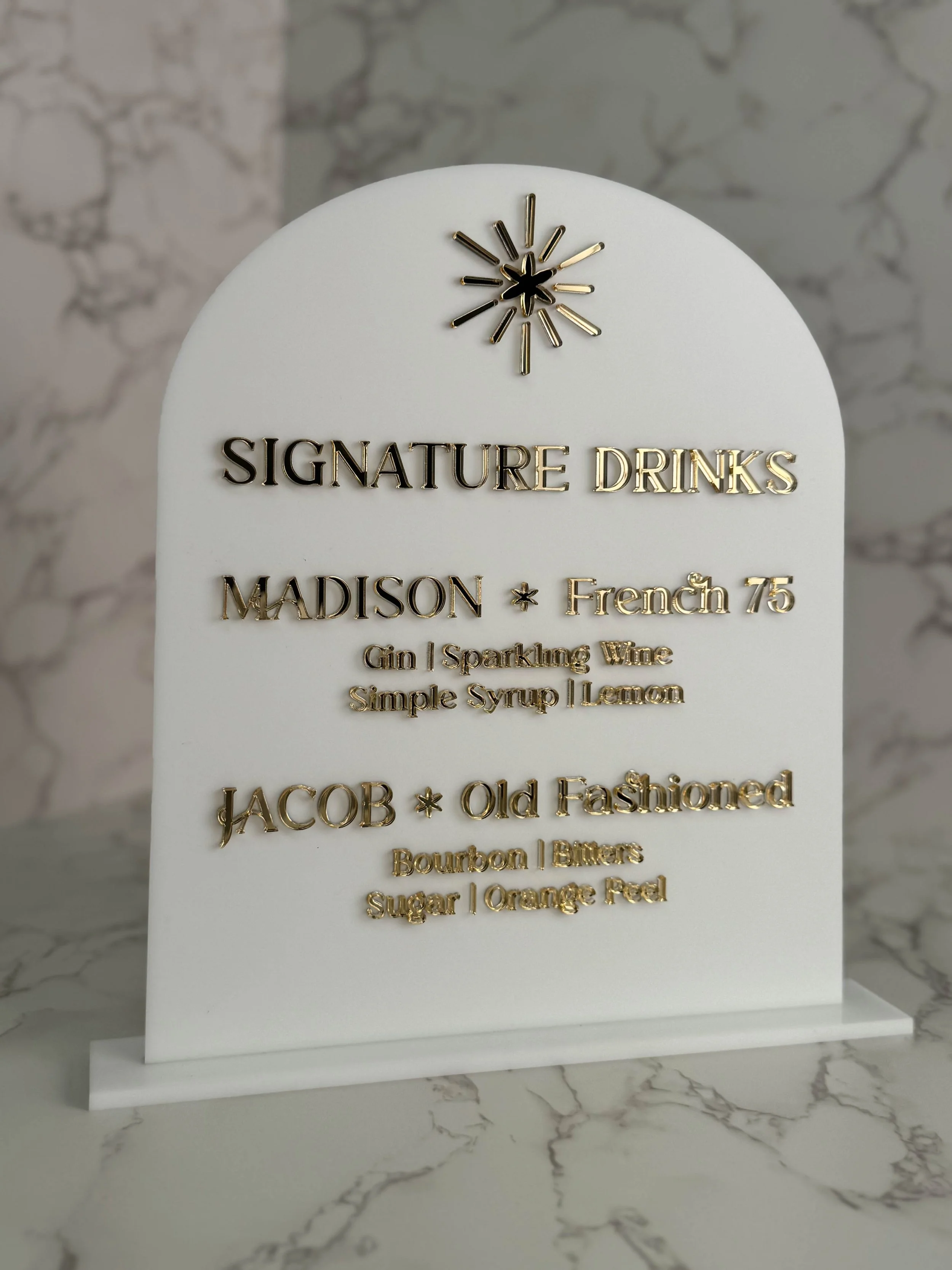 Bridal Decor Bundle - Tier 1 (4 Matching Items) $55.00 Bridal Decor Bundle - Tier 2 (6 Matching Items) $107.00 Bridal Decor Bundle - Tier 3 (8 Matching Items) $215.00 Acrylic Welcome Sign from $40.00 Acrylic Seating Chart Sign from $50.00 Acrylic Sign Our Guestbook Sign $8.00 Acrylic Table Numbers from $8.00 Acrylic Cards & Gifts Sign $8.00 Acrylic Signature Drinks Bar Sign from $8.00 Acrylic Wedding Cake Topper $5.00 Wood "Happily Every After" Wedding Cake Topper $5.00 Acrylic Guestbook With Wood Hearts from $40.00 Wood Guestbook With Fingerprints from $40.00 Wood or Acrylic "Thank You for Celebrating" Ornament from $5.00 Wood or Acrylic "Our First Christmas" Ornament from $5.00 Bouquet Charm $3.00